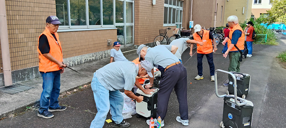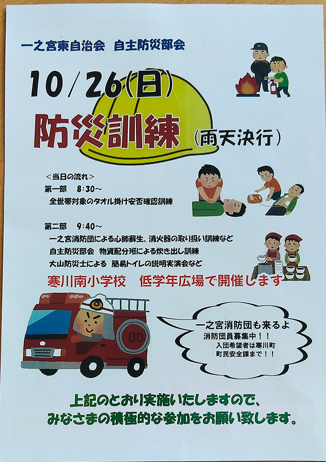 地元の複数の自治会の自主防火訓練に向けて南小学校内にある防災倉庫内の機材の確認を行いました✨