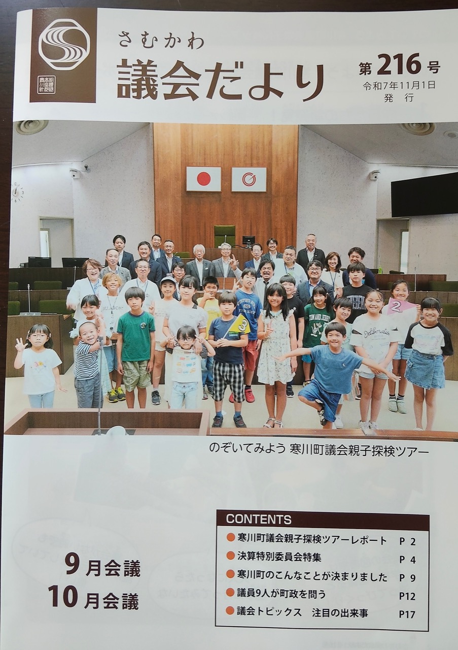 議会だより第216号が11/1に発行されました。お手元に届いている頃かと思います。是非ご覧なってください✨。