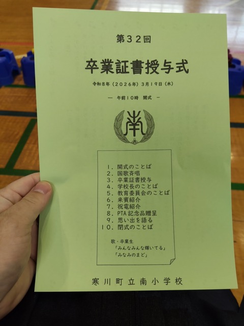 本日、第32回寒川町立南小学校の卒業証書授与式に、来賓として出席させていただきました。